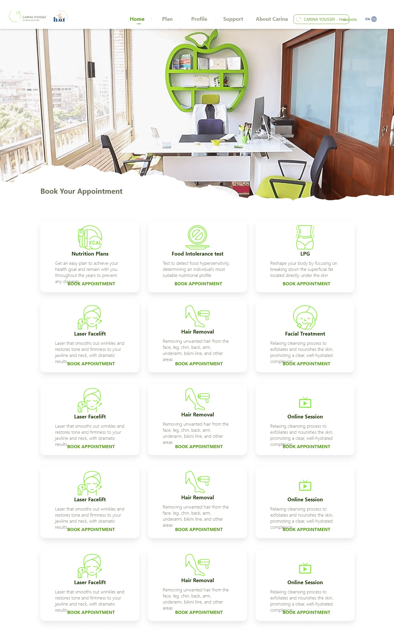 Carina Youssef is a patient-focused mobile application created to support nutrition guidance and general health services within a private clinic environment. The app centralizes essential patient interactions, including nutrition plans, appointment scheduling, consultations, and wellness tracking. The project aimed to replace fragmented communication and manual processes with a calm, reliable digital experience that patients can trust. By prioritizing clarity, simplicity, and privacy, the app helps patients stay engaged with their health journey while enabling the clinic to deliver more organized, consistent, and personalized care through a well-structured mobile interface.