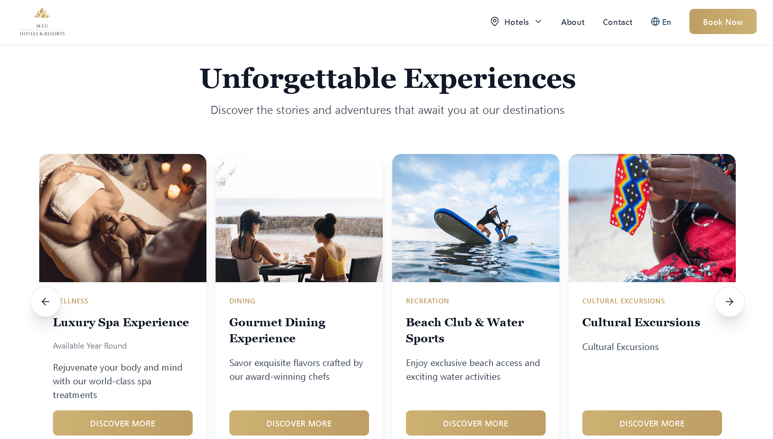 MSG Hotels & Resorts is a hospitality website designed to showcase and manage a group of hotels and resorts. It enables users to explore properties, view amenities, and complete reservations while supporting hotel administration through clear content structure, booking flows, and a refined digital experience focused on comfort, trust, and service excellence.