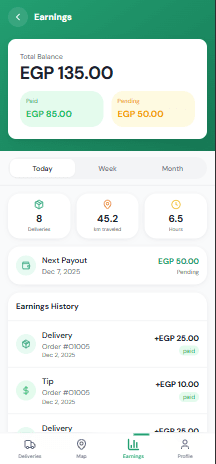 Our approach focused on creating a simple, distraction-free experience tailored for drivers on the move. We designed task-based flows that guide drivers step by step through order acceptance, pickup, delivery, and completion. Clear visual hierarchy, large touch targets, and minimal interactions were prioritized to improve usability and safety. Real-time feedback, status confirmations, and consistent UI patterns were used to ensure drivers always understand the current order state and next required action.