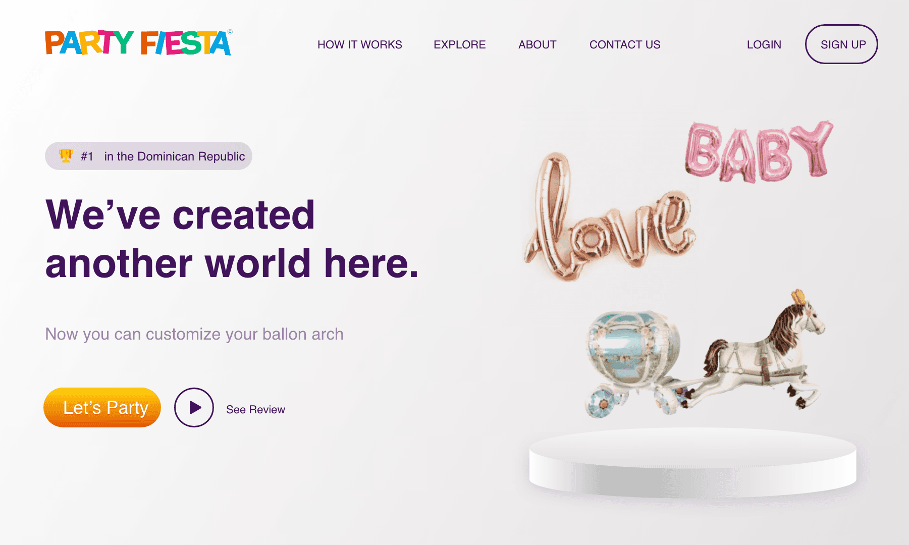 Party Fiesta is a customization platform that allows users to design and personalize their own balloon arches by choosing colors, selecting arrangements, visualizing the final setup, and placing orders easily. It offers a fun, intuitive, and structured experience that simplifies event decoration planning for celebrations of all sizes.