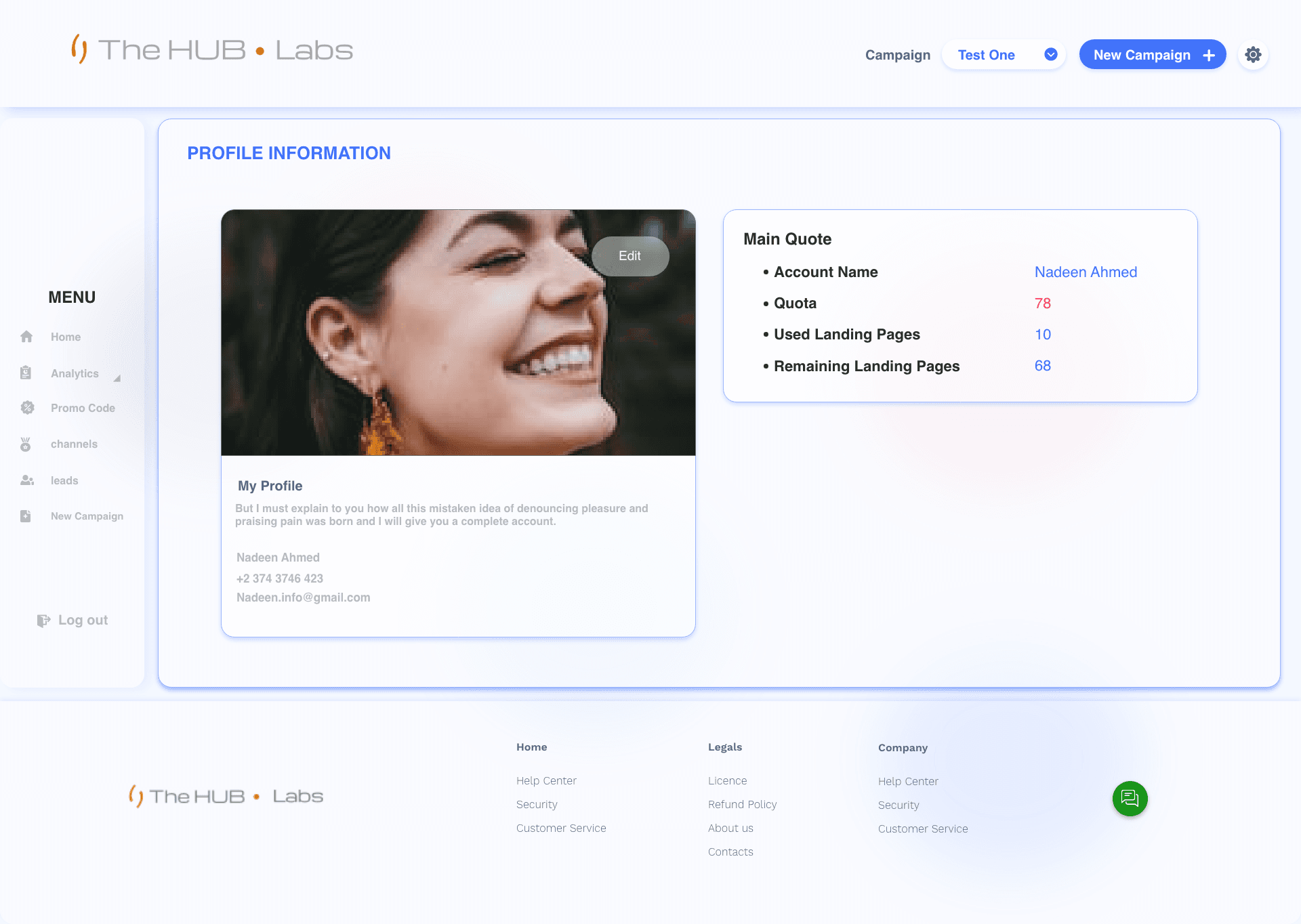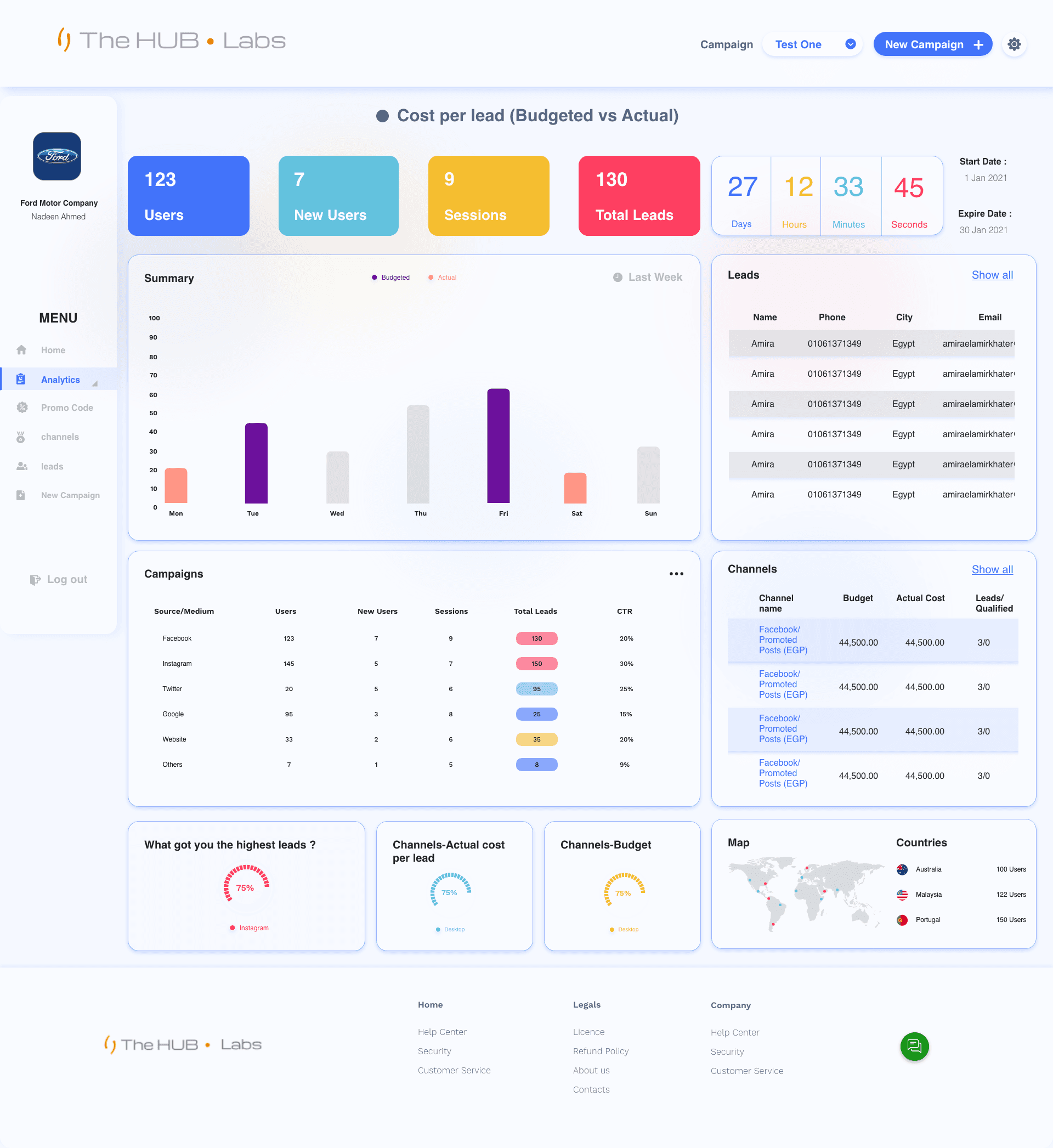 Hub Laps is a web based dashboard that helps teams create and manage product pages while monitoring usage metrics in one place. Users can add products, track user counts, analyze engagement trends, and review key performance data through a structured interface designed for clarity, scalability, and efficient decision making support.