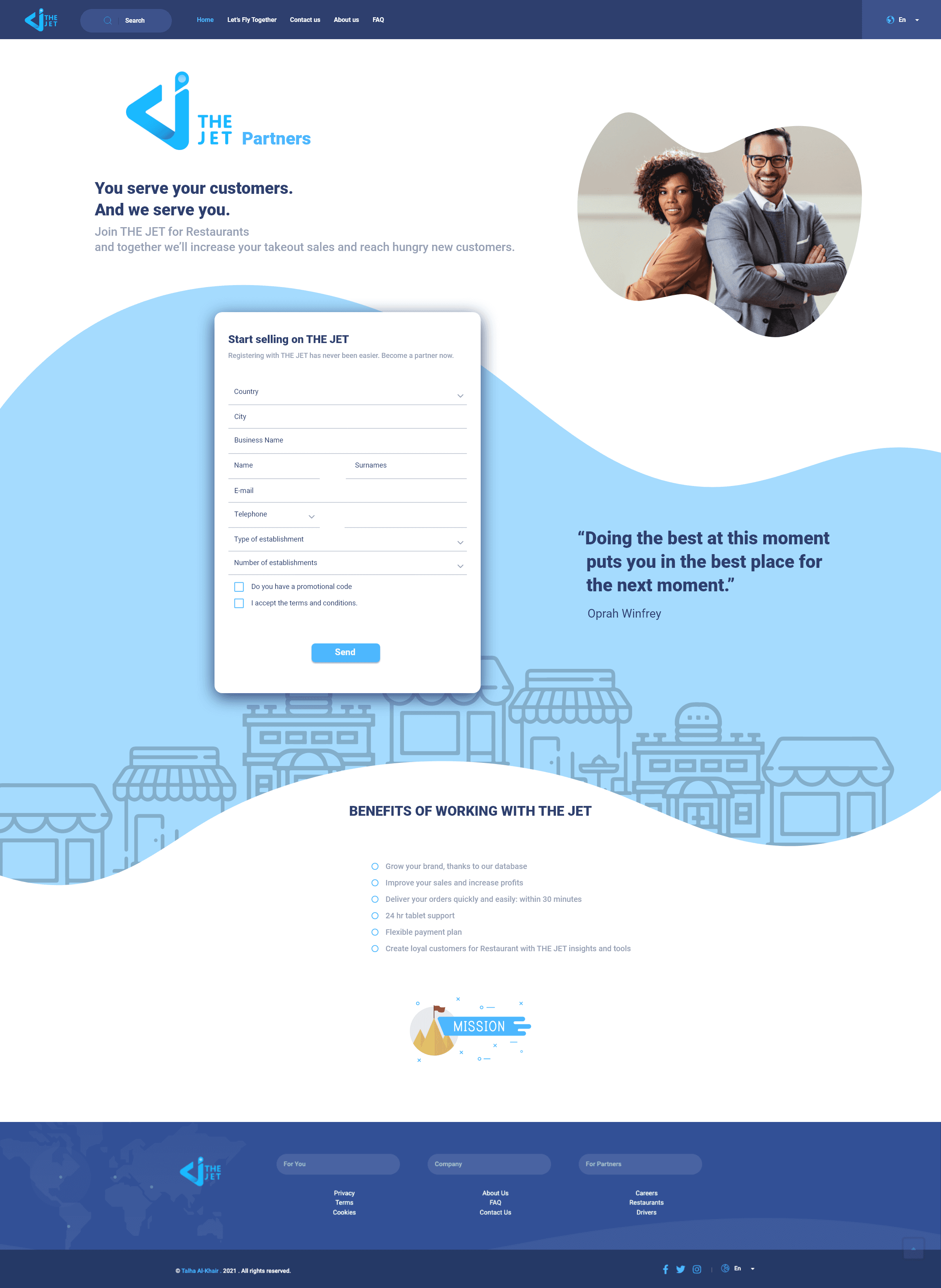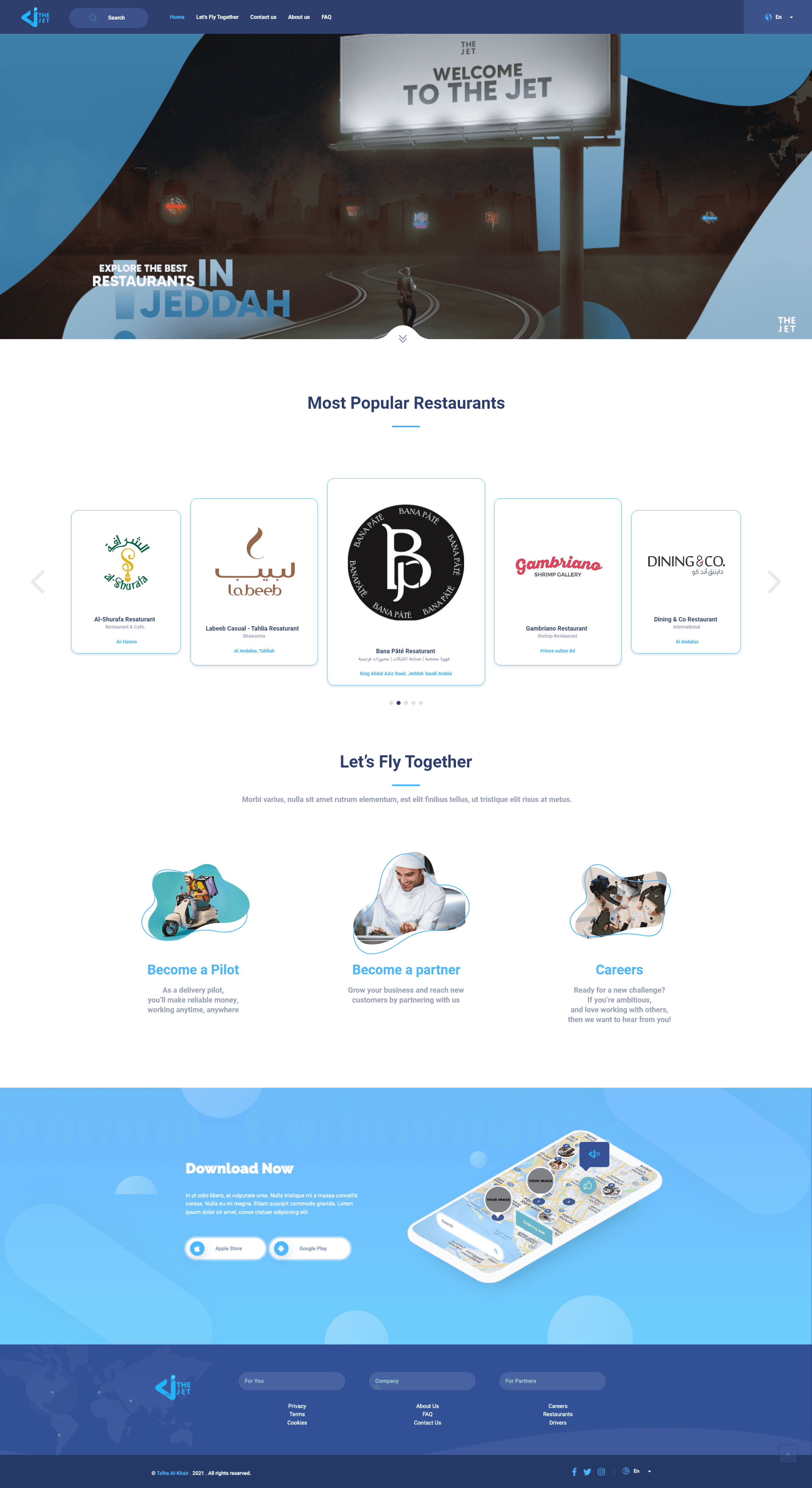 The Jet is a restaurant discovery website helping users explore dining options across Jeddah, Saudi Arabia. It enables browsing restaurants, viewing menus, checking locations, and discovering new places through a visually engaging, easy to navigate web experience designed to support confident and enjoyable dining decisions for locals and visitors alike.